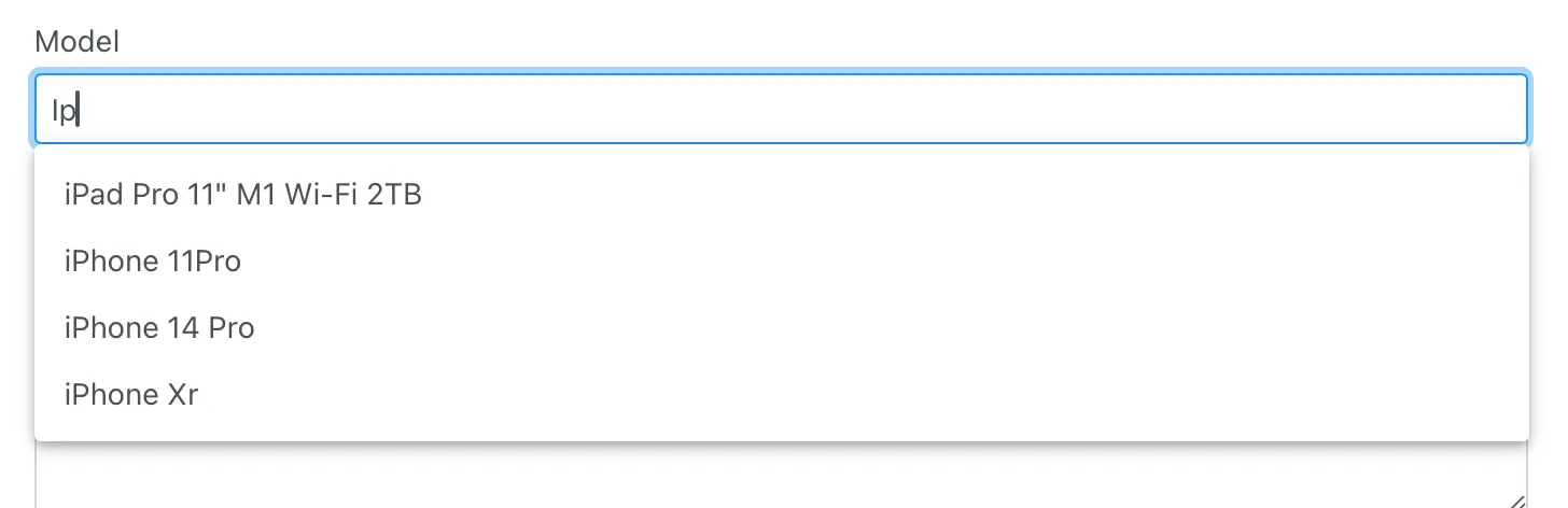 If you are receiving assets of the same model, just start typing the model name, and the system will suggest a list of relevant model names that were previously entered into the system.