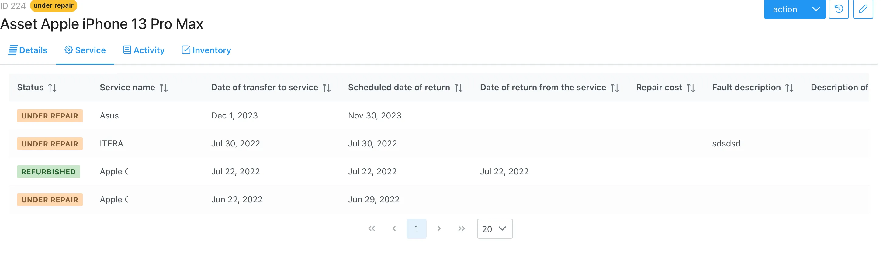 After editing the asset form, the system saves the entire history of changes.