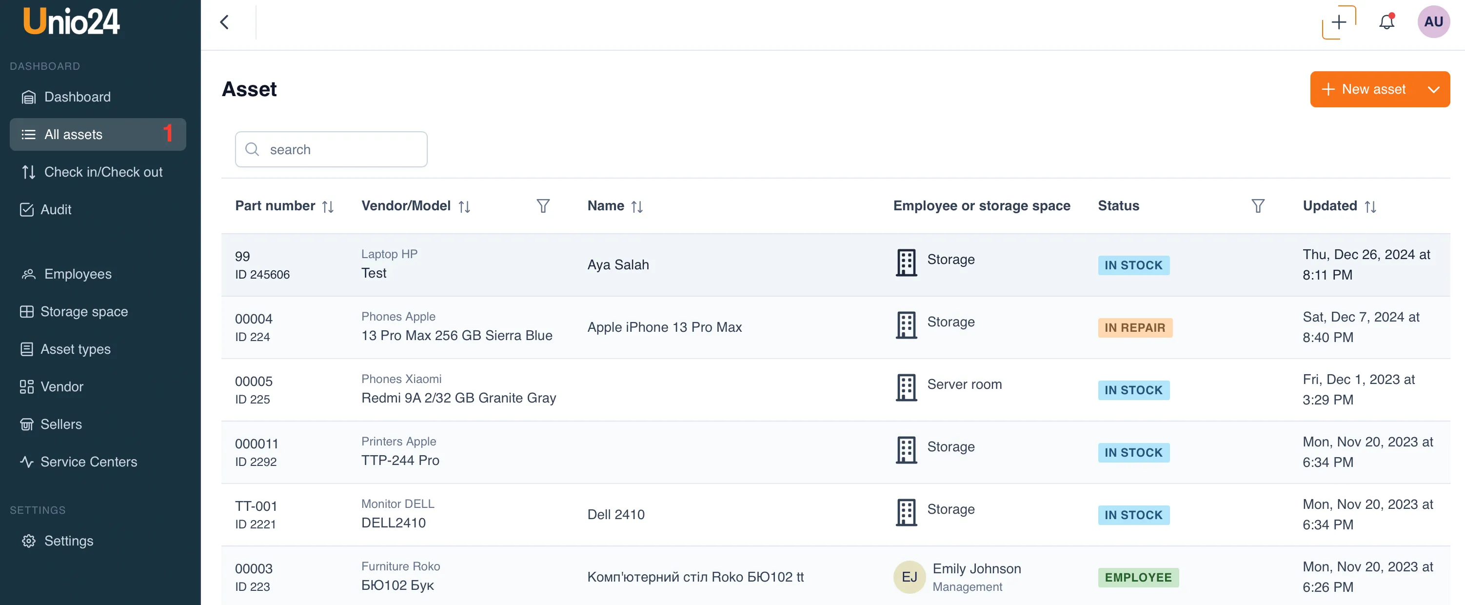 In the Unio24 system, an asset is the core around which all processes are built.