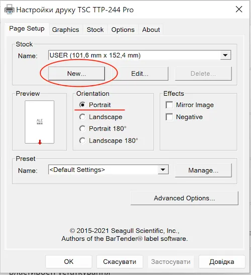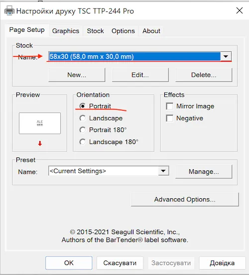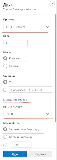 Section titled “Setting up Label Format for a Label Printer in Windows OS”To configure the necessary 58x30mm format for the label printer, follow these steps: