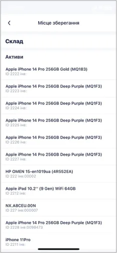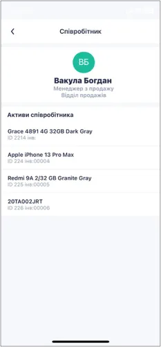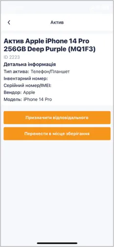 Section titled “Viewing Asset Information”After scanning an asset’s QR code or navigating to the asset from the storage location or employee profile, you can view information about the asset and perform asset movement operations.
