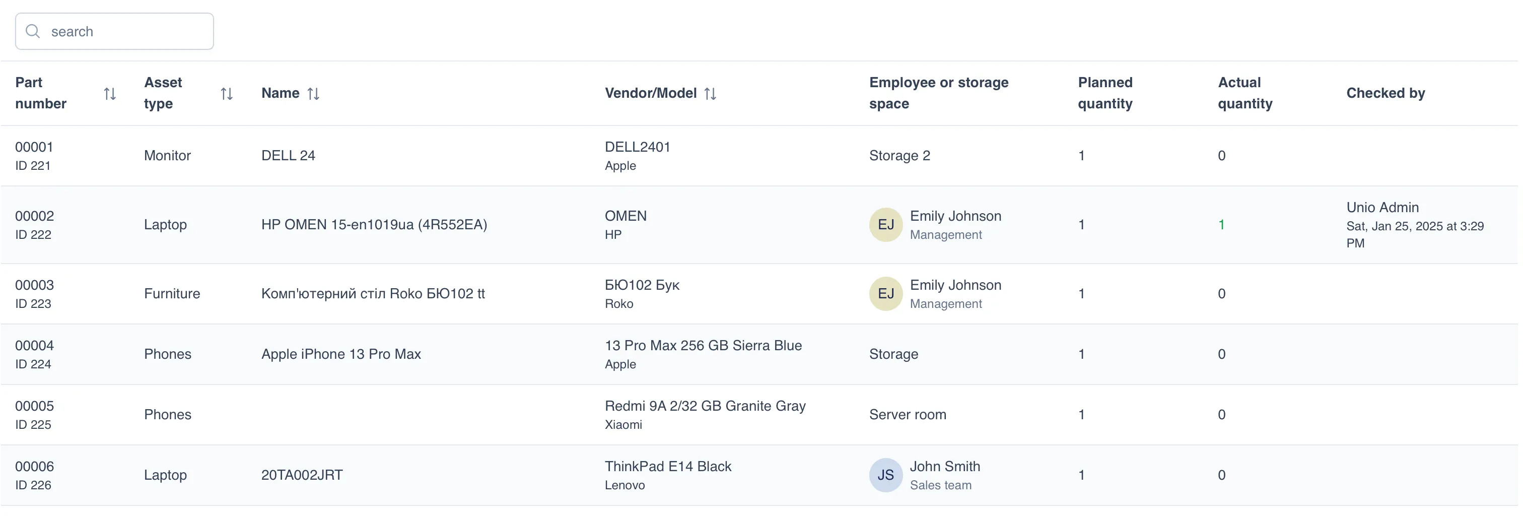 You can check and input assets into the inventory both in the UNIO24 system and via the UNIO24 Mobile mobile app (version 1.2).