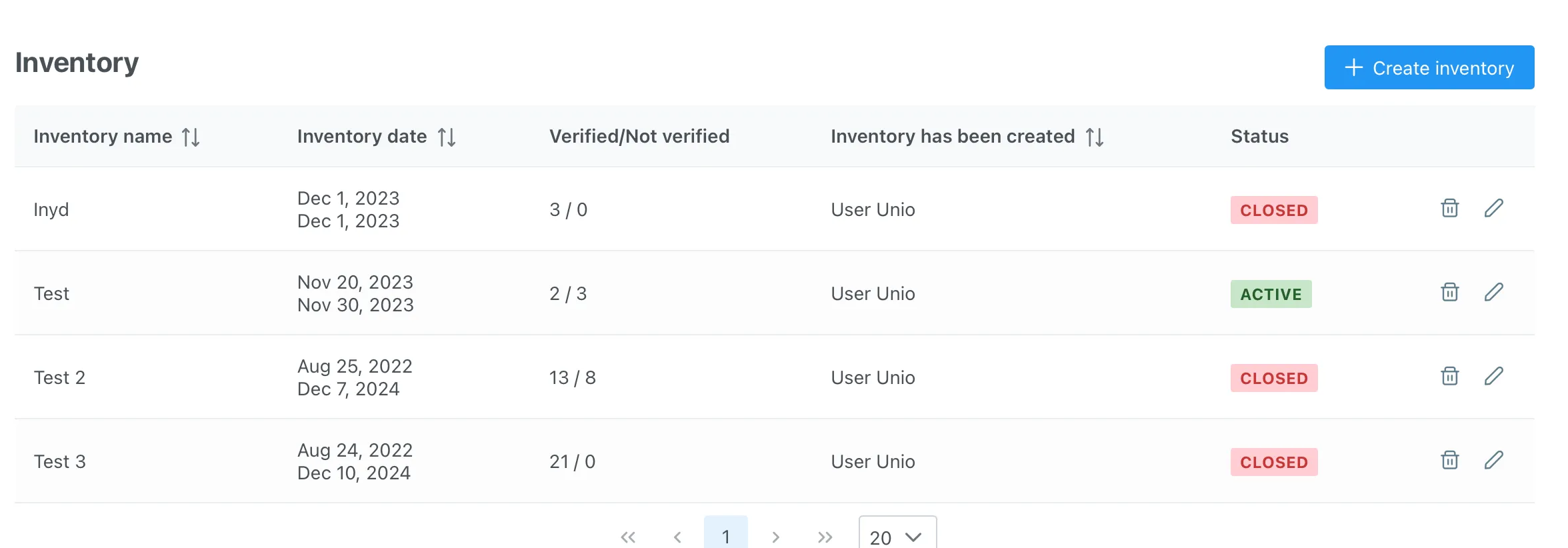 Section titled “Conducting Inventory”The presented list of inventories shows: