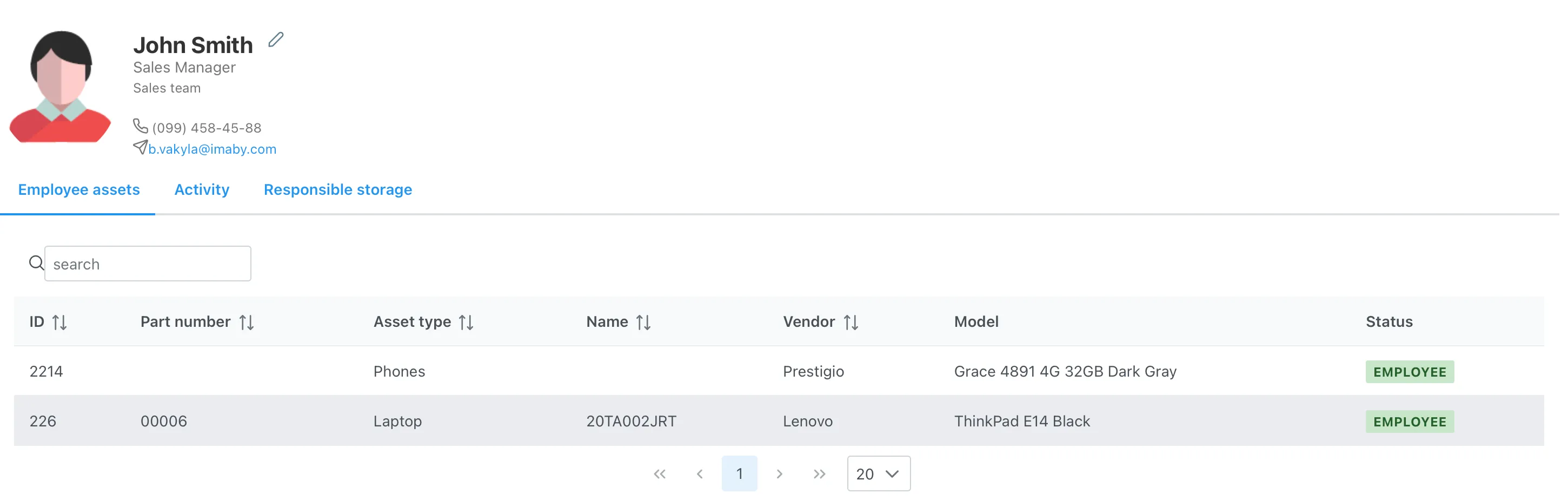 Заголовок раздела «Активы сотрудника»Актив сотрудника - отображают информацию обо всех активах, которые находятся непосредственно в пользовании сотрудника.