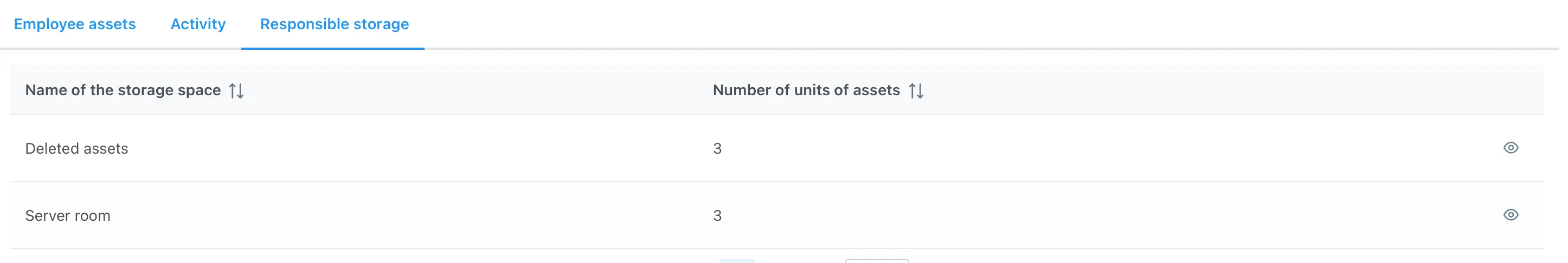 Переход на Место хранения отображает все активы, которые хранятся в выбранном месте хранения.