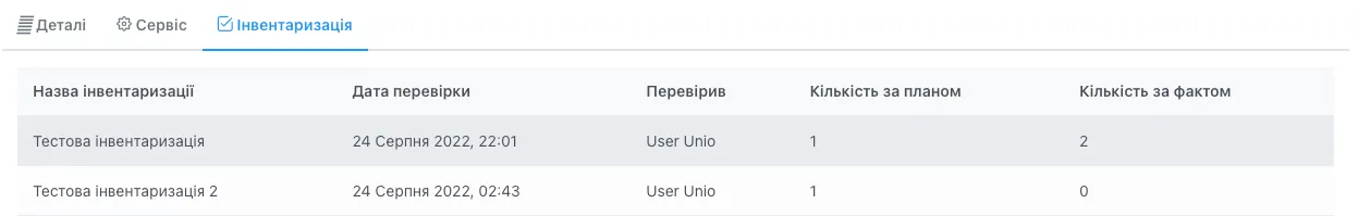 Вкладка «Инвентаризация» отображает подробную о проведении инвентаризации непосредственно по активу: