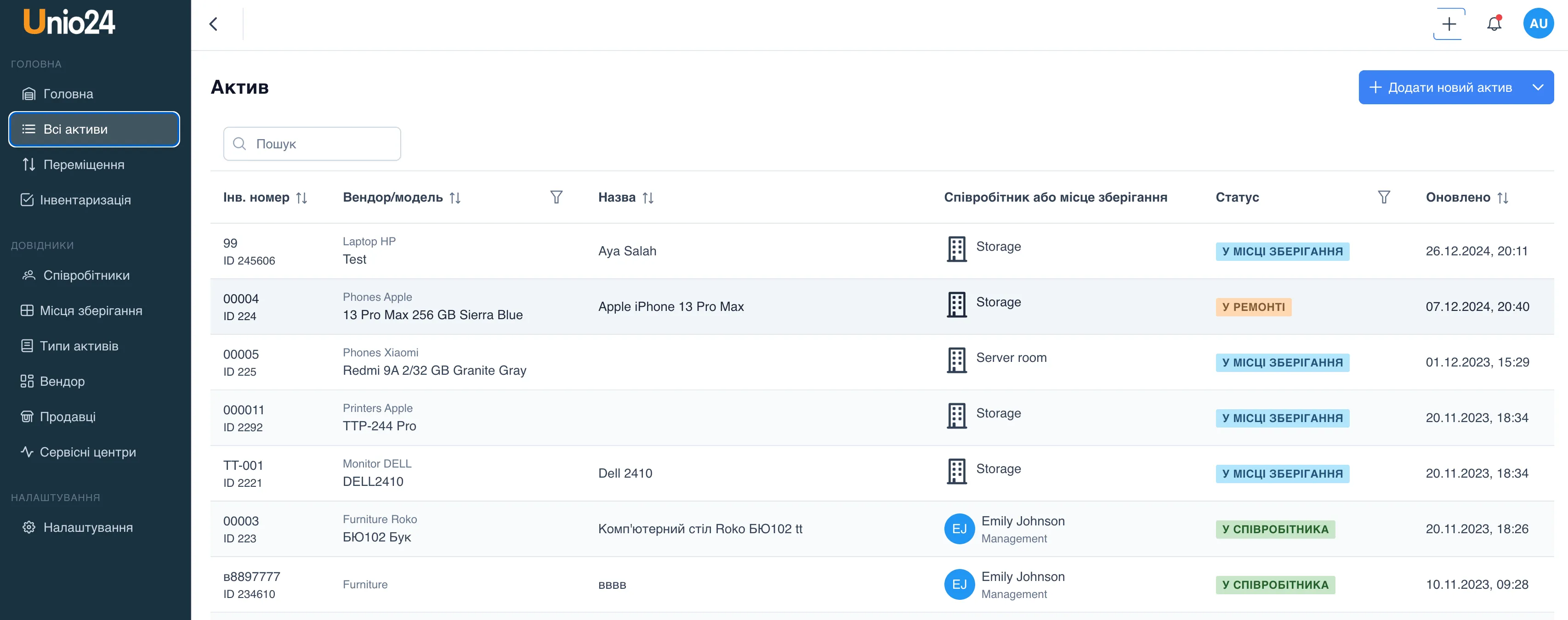 У системі Unio24 Актив є ядром системи, навколо якого будуються всі процеси