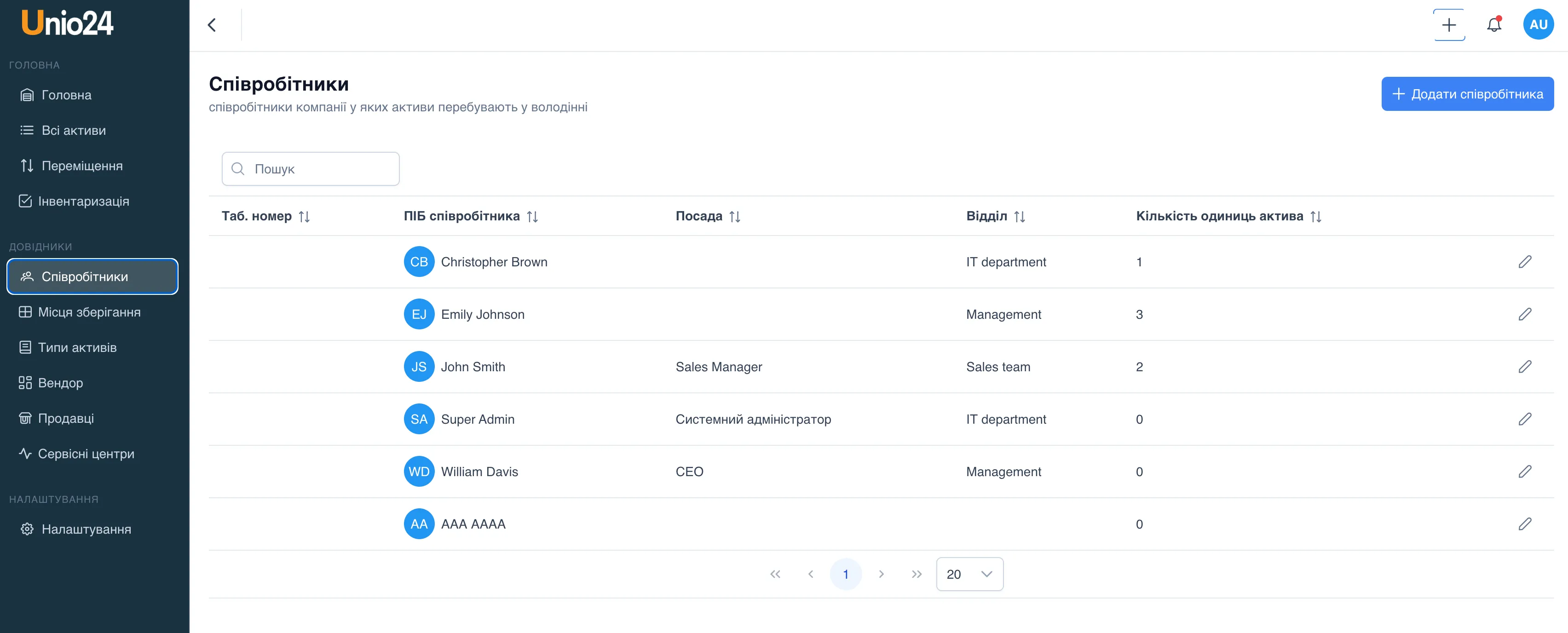 Ми пропонуємо під час роботи з системою вводити всіх співробітників і всі активи, які видані співробітнику, закріплювати за ним. Це дасть Вам змогу завжди точно знати, де актив і хто ним на даний момент користується.
